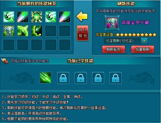 (2)可通过刷新技能来学习自己需要的翅膀技能。