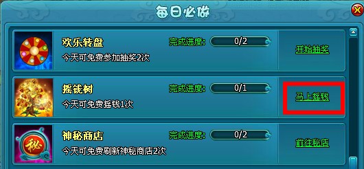 (1)在每日必做中,摇钱树一栏,点击“马上摇钱”, 即可进入摇钱树页面。