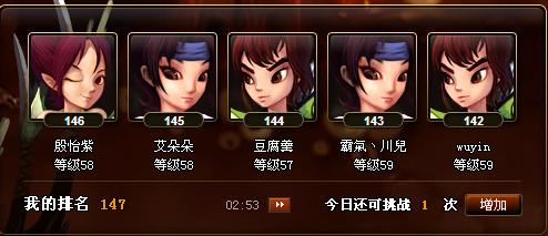 玩家只能挑战排名相邻且比自己高的5名玩家,挑战胜利则双方互换排名。