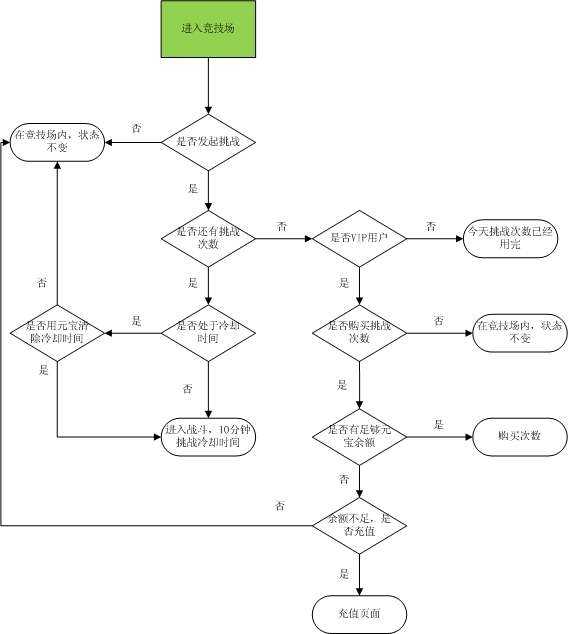 每天有15次免费挑战的机会,每挑战一次,今日还可挑战次数位置会减一,VIP用户可以点击挑战次数后面的增加按钮购买竞技场挑战次数,花费的元宝数会依次递增。