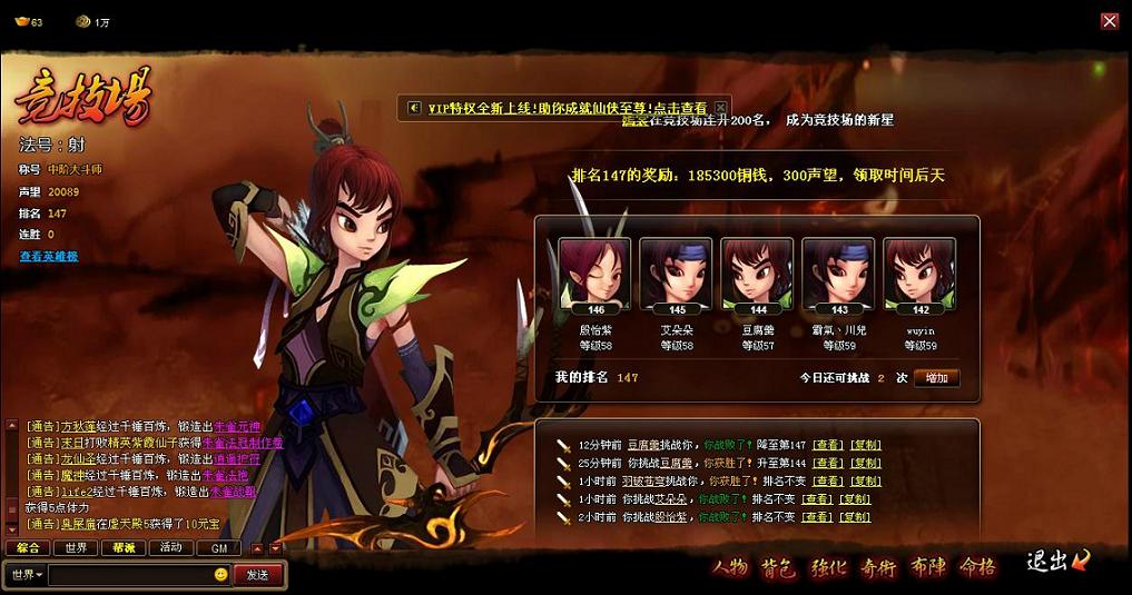 7.5 竞技场公告能使玩家有尽可能快且多发起挑战,争取多连胜和快速提升排名。