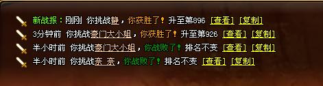 上升速度公告:玩家排名连续提升达到一定名次,会出上升速度公告