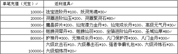 温馨提示:单笔充值奖励可重复领取,不设上限,奖励物品均为绑定,以信函方式发放。
