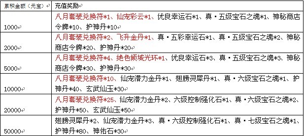 活动期间,累积充值达到指定额度,还可以获得以下超值丰厚的奖励哦!