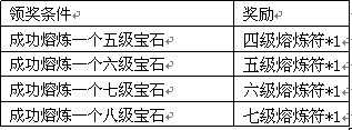 活动期间,玩家每熔炼成功一个指定级别宝石,即可获得系统赠送的好礼一份。