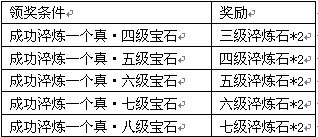 活动期间,玩家每淬炼成功一个指定级别的真·宝石,即可获得系统赠送的好礼一份。