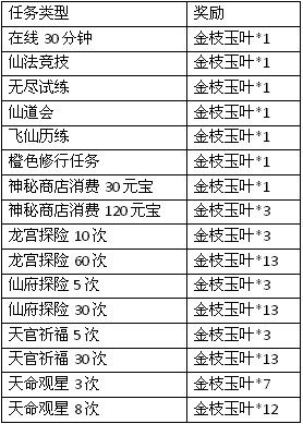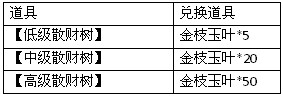 1.活动期间,玩家完成以下指定游戏内容可获得金枝玉叶,不同数量金枝玉叶可兑换不同级别的散财树;