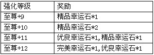 活动规则:活动期间,任意装备至尊强化成功至指定级别,都可获得额外奖励。