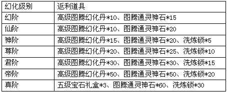 活动规则:活动期间,将图腾幻化到指定级别,可获得额外系统赠礼。