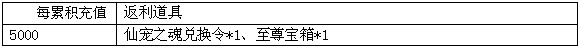 活动规则:活动期间,每累积充值达到5000元宝可获得豪礼馈赠!