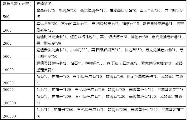 活动规则:活动期间,单笔充值达到指定额度,还可以获得以下超值丰厚的奖励哦!