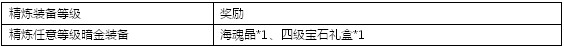 活动规则:活动期间,玩家通过橙装精炼获得任意一件橙装(包括橙色武器)或精炼成功任意暗金装备,即可获得系统奖励一份。