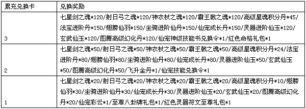 活动期间,40级以上玩家每天登陆游戏可获得额外奖励:仙宠精魂·紫*16、仙宠口粮*12、幸运金币*2、神秘商店令牌*2、飞仙令牌·绿*10、高级铜钱卡*6。