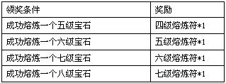活动规则:活动期间,玩家每熔炼成功一个指定级别宝石,即可获得系统赠送的好礼一份。