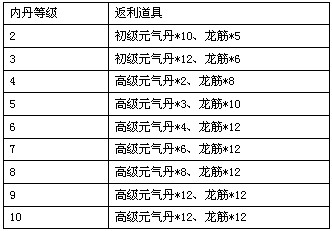 活动规则:在刷新内丹重铸系统每消费800元宝即可获得高级元气丹*3奖励!