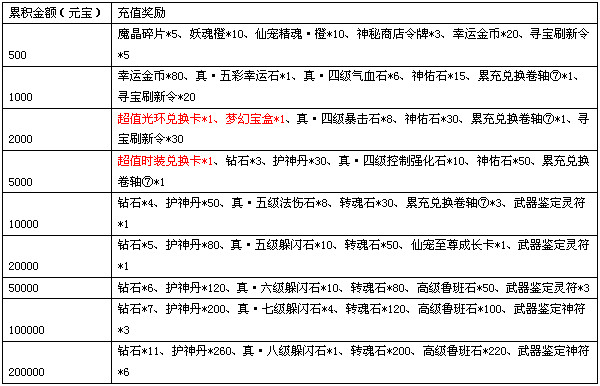 6、累积充值大礼:活动期间,累积充值达到指定额度,还可以获得以下超值丰厚的奖励哦!