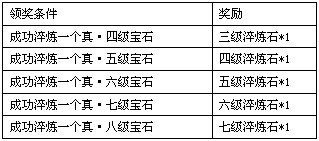 活动期间,玩家每淬炼成功一个指定级别的真·宝石,即可获得系统赠送的好礼一份。