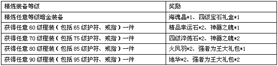 活动规则:活动期间,玩家通过橙装精炼获得任意一件橙装(包括橙色武器)或精炼成功任意暗金装备,即可获得系统奖励一份。