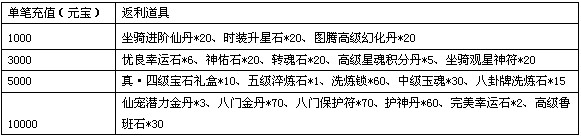 活动规则:活动期间,单笔充值达到指定额度,还可以获得以下超值丰厚的奖励哦!