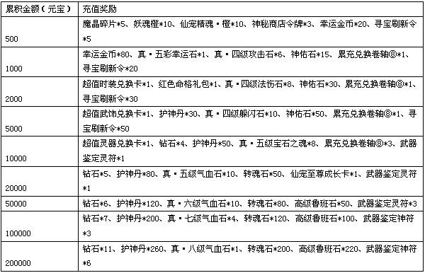 6、累积充值大礼:活动期间,累积充值达到指定额度,还可以获得以下超值丰厚的奖励哦!