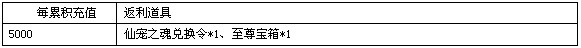 活动规则:活动期间,每累积充值达到5000元宝可获得豪礼馈赠!