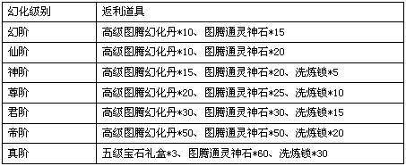 活动规则:活动期间,将图腾幻化到指定级别,可获得额外系统赠礼。