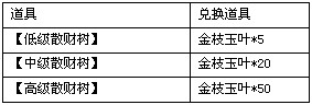 1.活动期间,玩家完成以下指定游戏内容可获得金枝玉叶,不同数量金枝玉叶可兑换不同级别的散财树;
