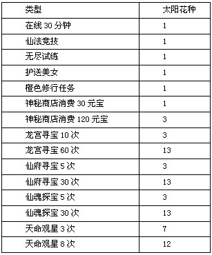 1.活动期间,玩家完成以下指定游戏内容可获得太阳花种,不同数量太阳花种可兑换不同级别的太阳花;