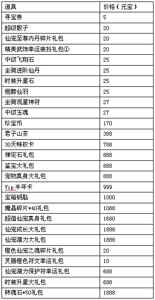 温馨提示:部分珍贵道具只能购买一次,购买物品为绑定,购买后直接发送至背包。