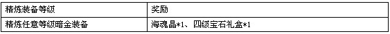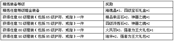 活动规则:活动期间,玩家通过橙装精炼获得任意一件橙装(包括橙色武器)或精炼成功任意暗金装备,即可获得系统奖励一份。
