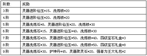 活动规则:活动期间将灵器进阶至指定阶数,将获得额外系统奖励。