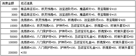 活动规则:活动期间,玩家在除市场外其他全部系统累积消费至指定额度,可获得额外的奖励。