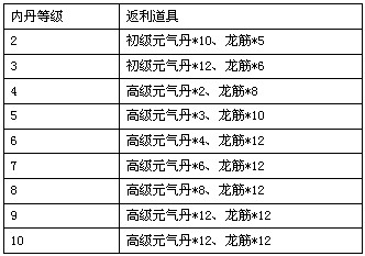 活动规则:活动期间,在刷新内丹重铸系统每消费800元宝即可获得高级元气丹*3奖励!