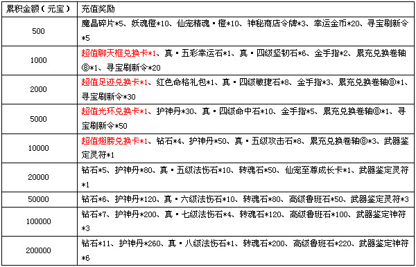 6、累积充值大礼:活动期间,累积充值达到指定额度,还可以获得以下超值丰厚的奖励哦!