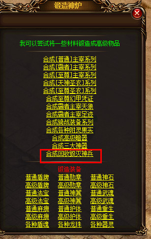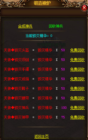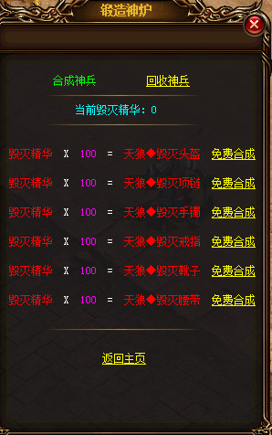 在锻造神炉可以合成和回收毁灭装备