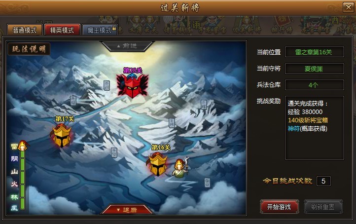 l 开启页签后点击【开始游戏】按钮即可进入过关斩将的【精英模式】。
