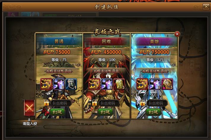 跨服远征本中加入长坂之战英雄难度的副本,需求战斗力75W。