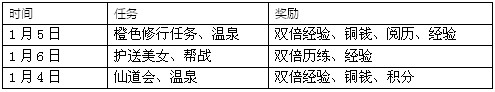 活动期间,40级以上玩家每天登陆游戏可获得额外奖励:仙宠精魂·紫*16、仙宠口粮*12、幸运金币*2、神秘商店令牌*2、飞仙令牌·绿*10、高级铜钱卡*6。