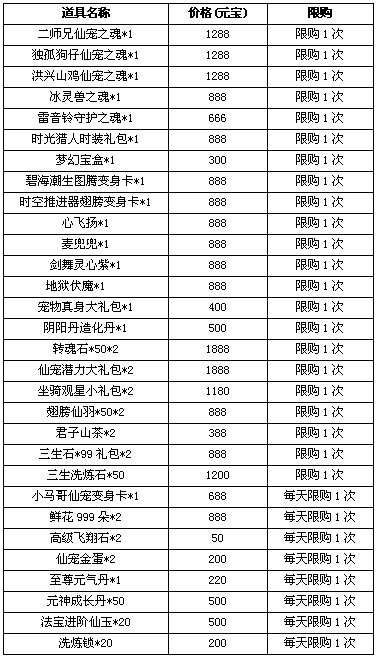 【活动内容】活动期间,玩家可以超值价格购买以下珍贵道具,数量有限,勿错失良机。