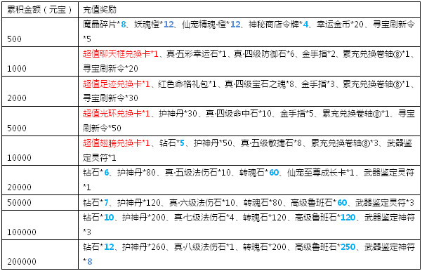 6、累积充值大礼:活动期间,累积充值达到指定额度,还可以获得以下超值丰厚的奖励哦!