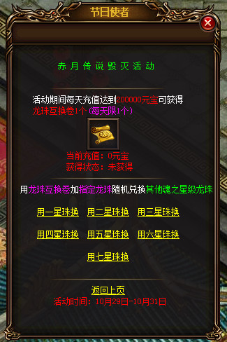 条 件:充值达到20W元宝赠送龙珠互换卷