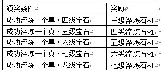 活动期间,玩家每淬炼成功一个指定级别的真·宝石,即可获得系统赠送的好礼一份。