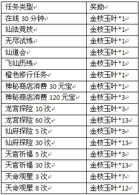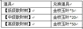 1.活动期间,玩家完成以下指定游戏内容可获得金枝玉叶,不同数量金枝玉叶可兑换不同级别的散财树;