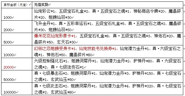 活动期间,累积充值达到指定额度,还可以获得以下超值丰厚的奖励哦!