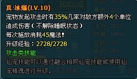 ③冰爆:宠物发起攻击时有x%几率对敌方额外y个单位造成伤害,不解除睡眠状态(技能阶数和等级越高,效果越好)。