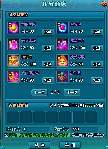 1. 龙宫仙境,仙府秘境,仙魂探宝,天官赐福,寻宝增加积分兑换功能,可兑换大量珍稀物品,更超值,更划算!