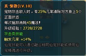 ①驱散:宠物攻击有x%几率清除对方身上y个正面状态(技能阶数和等级越高,效果越好)。