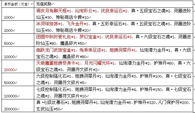 活动期间,累积充值达到指定额度,还可以获得以下超值丰厚的奖励哦!