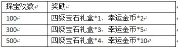 【温馨提示】探宝次数每天清空,奖励每天可领取一次,由信函发放,均为绑定。