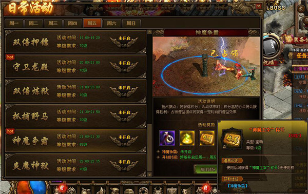 1.新增跨服神魔战场【神魔争霸】玩法(跨服开启后,每周 周一、周五 晚21:00-21:30)